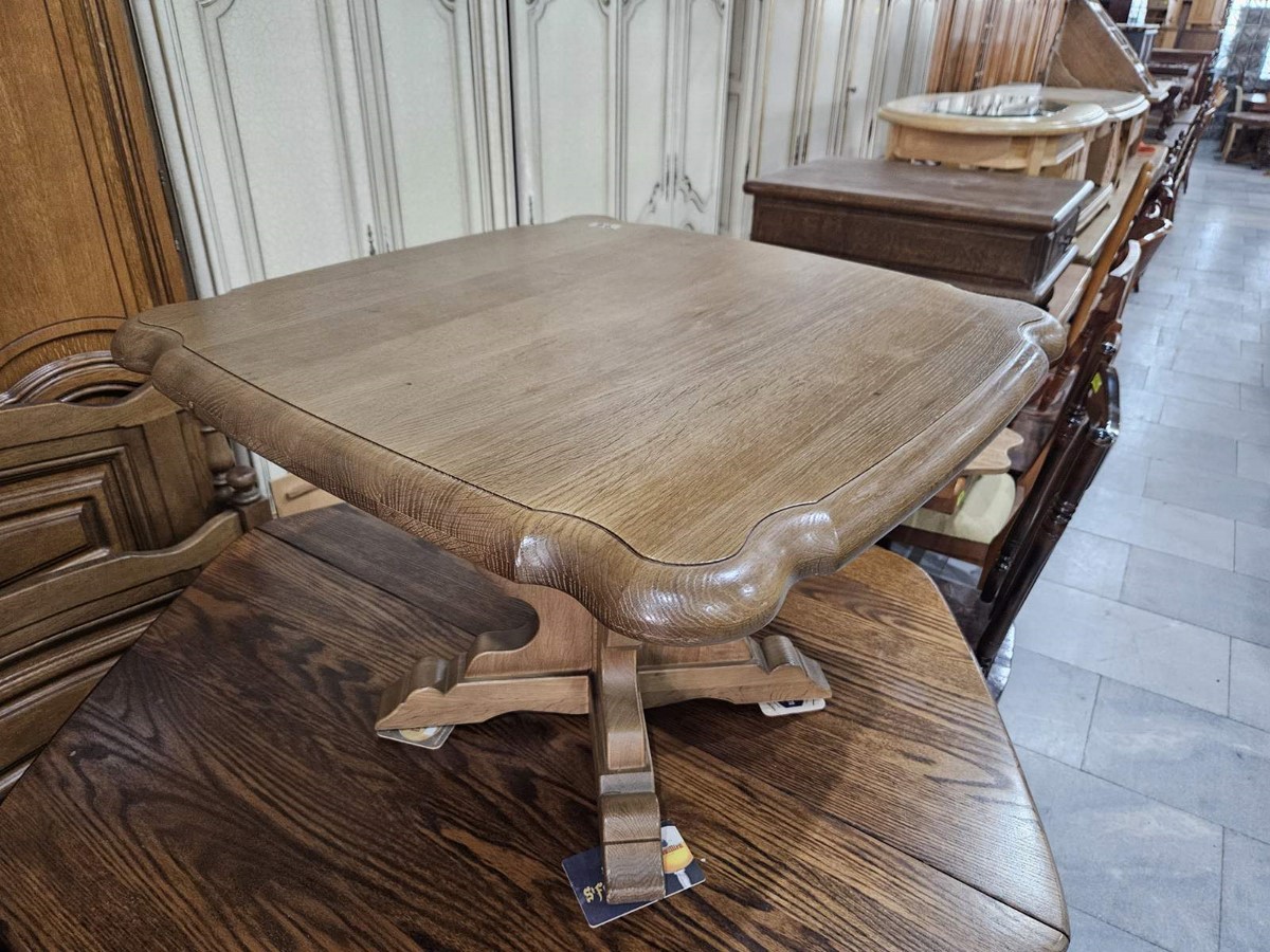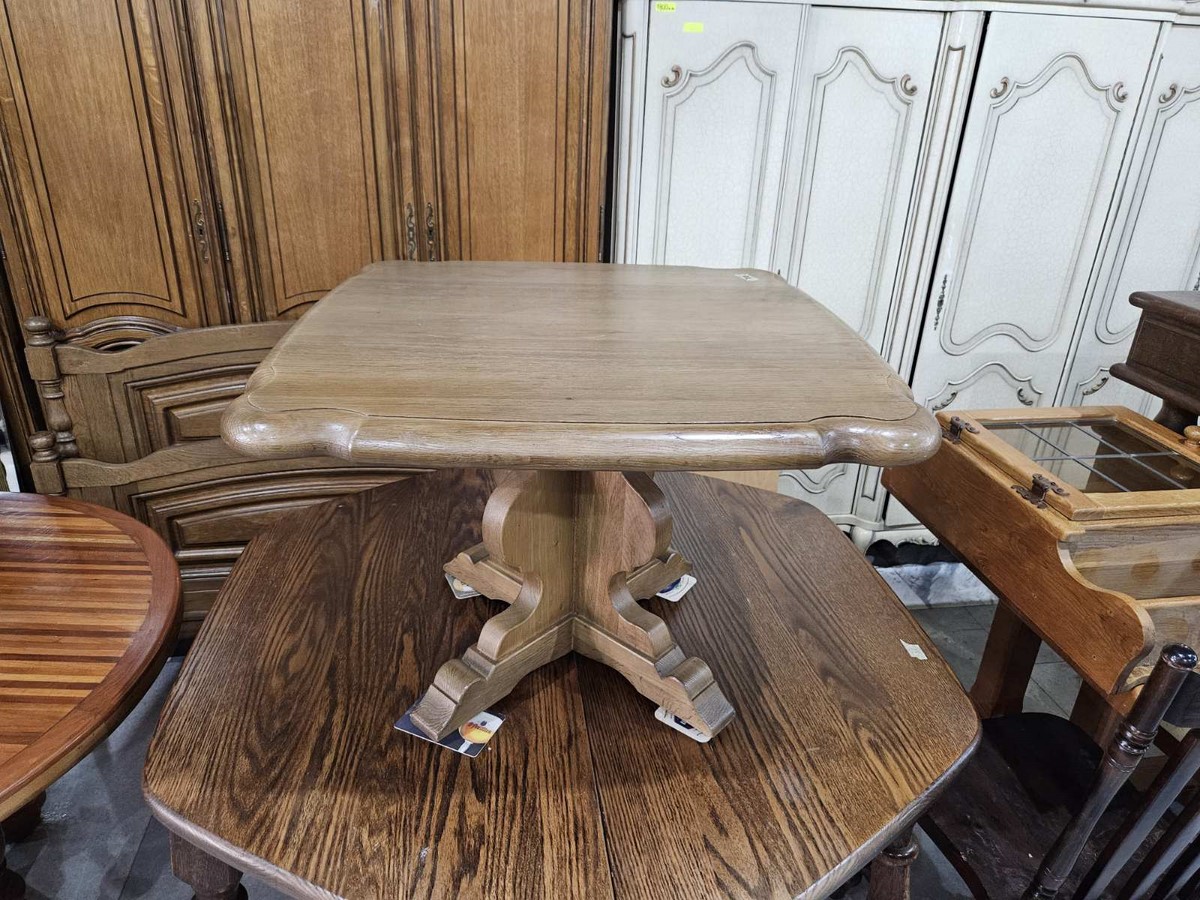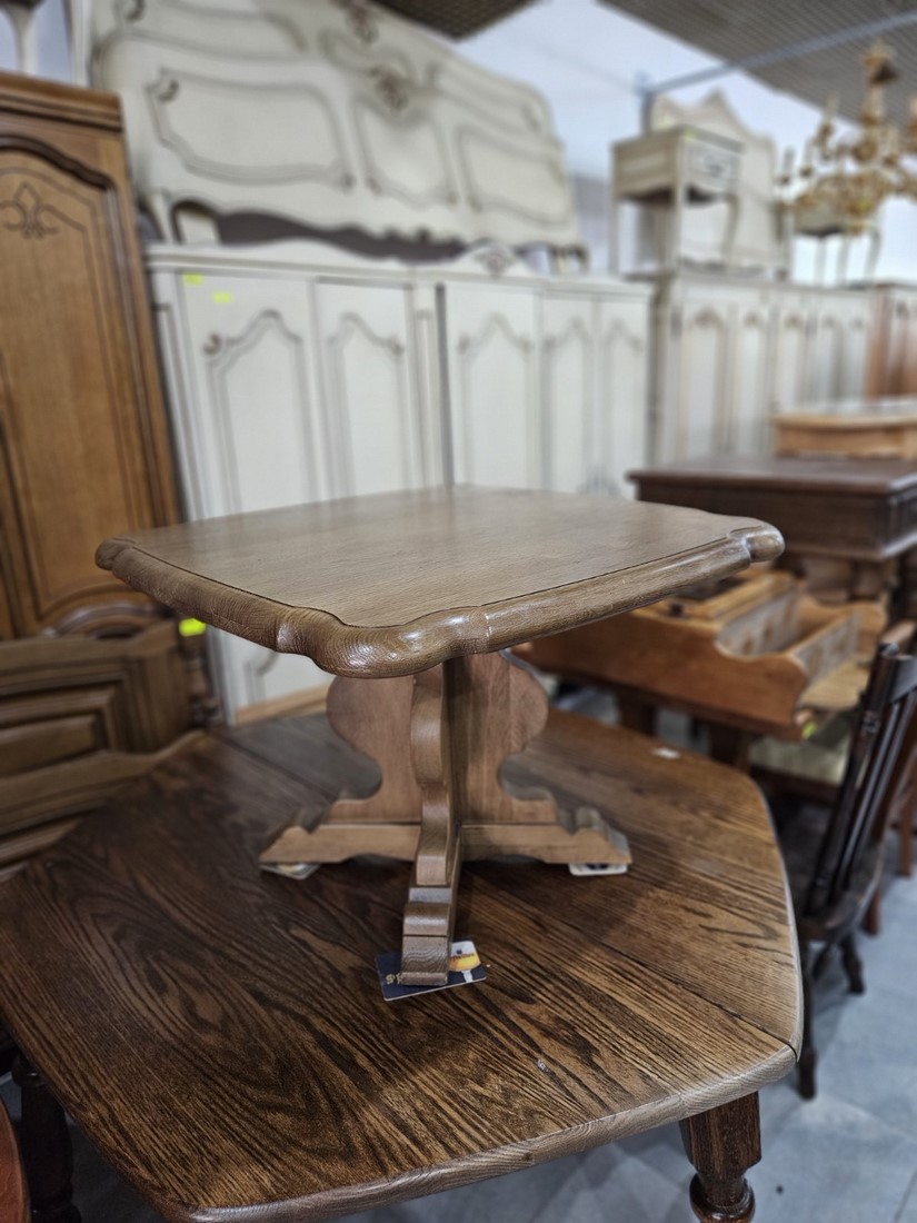 Компактна маса с елегантно профилиран плот и стабилна основа.