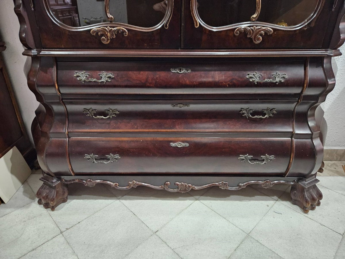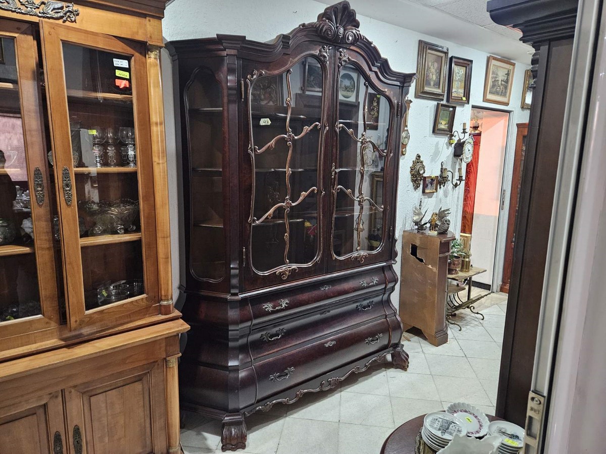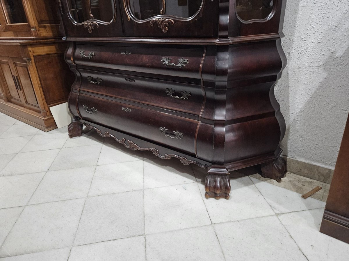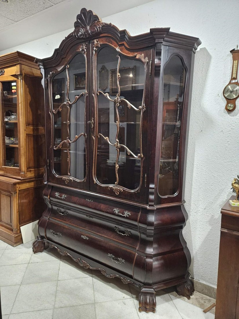 Впечатляваща витрина в класически английски стил Чипъндейл, с богато профилиран силует и декоративни елементи.