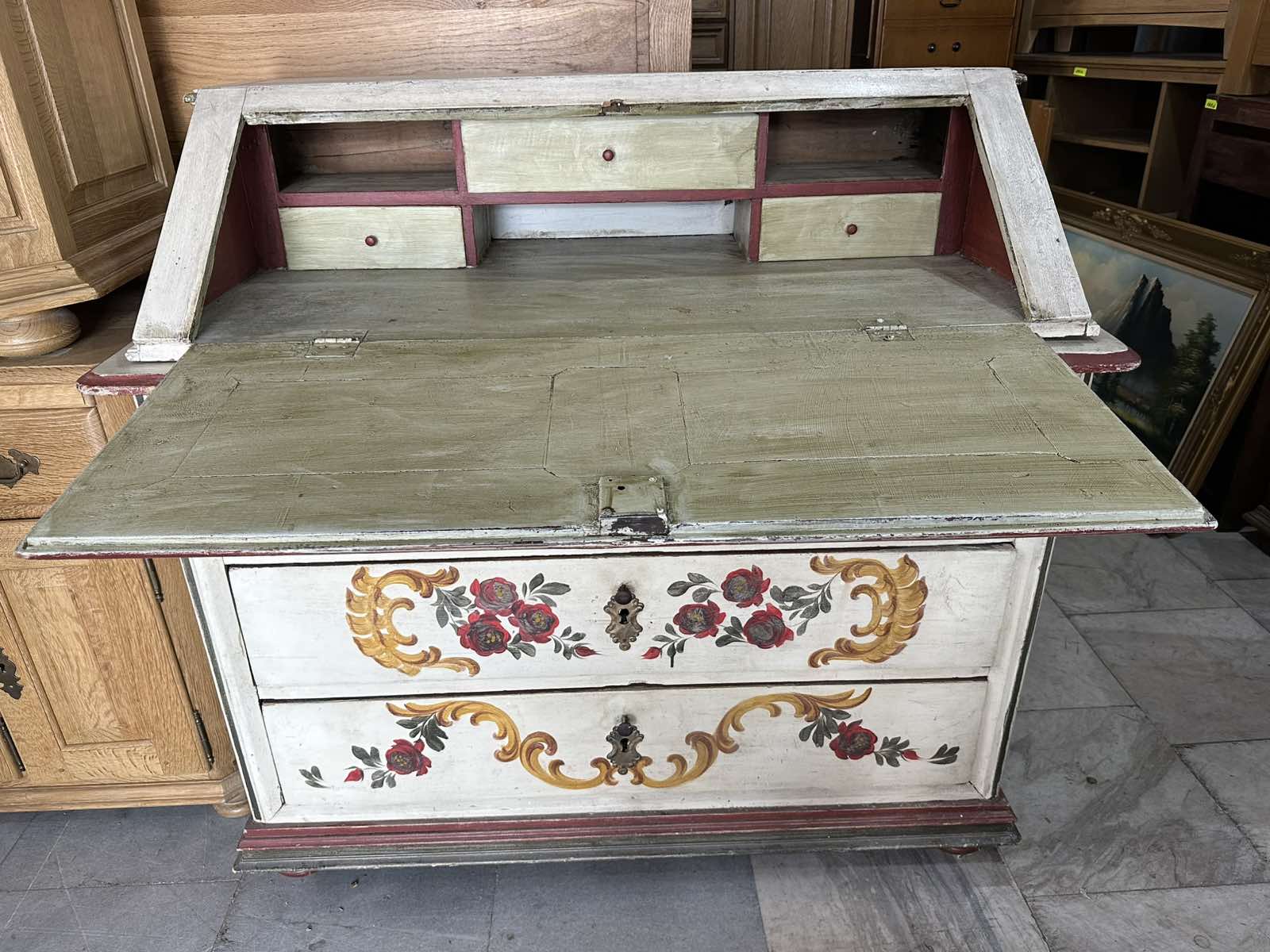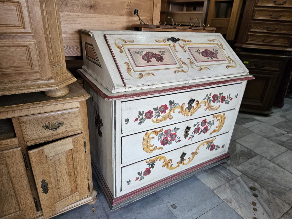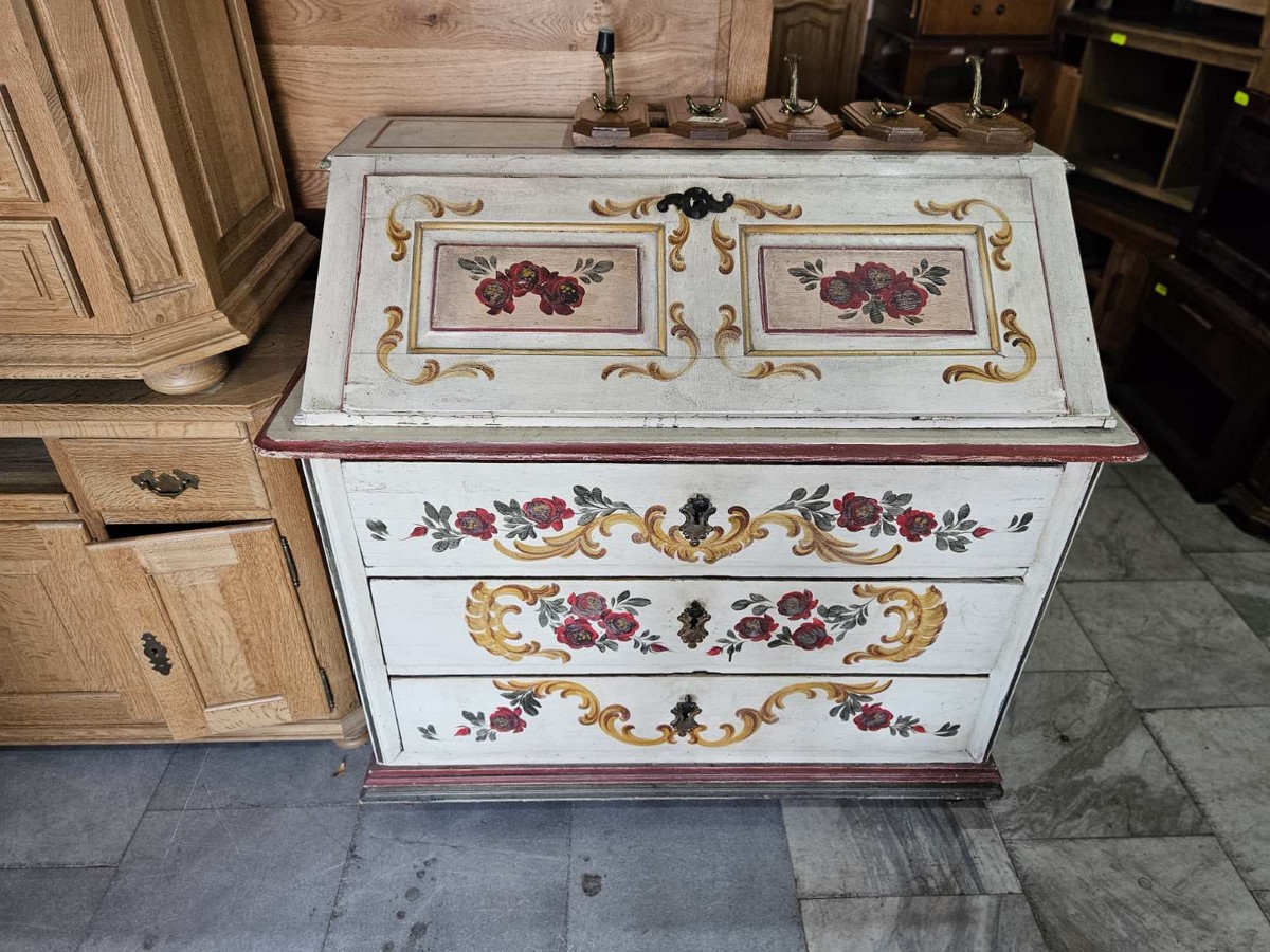 Уникално ретро писалище с ръчно изрисувани флорални мотиви