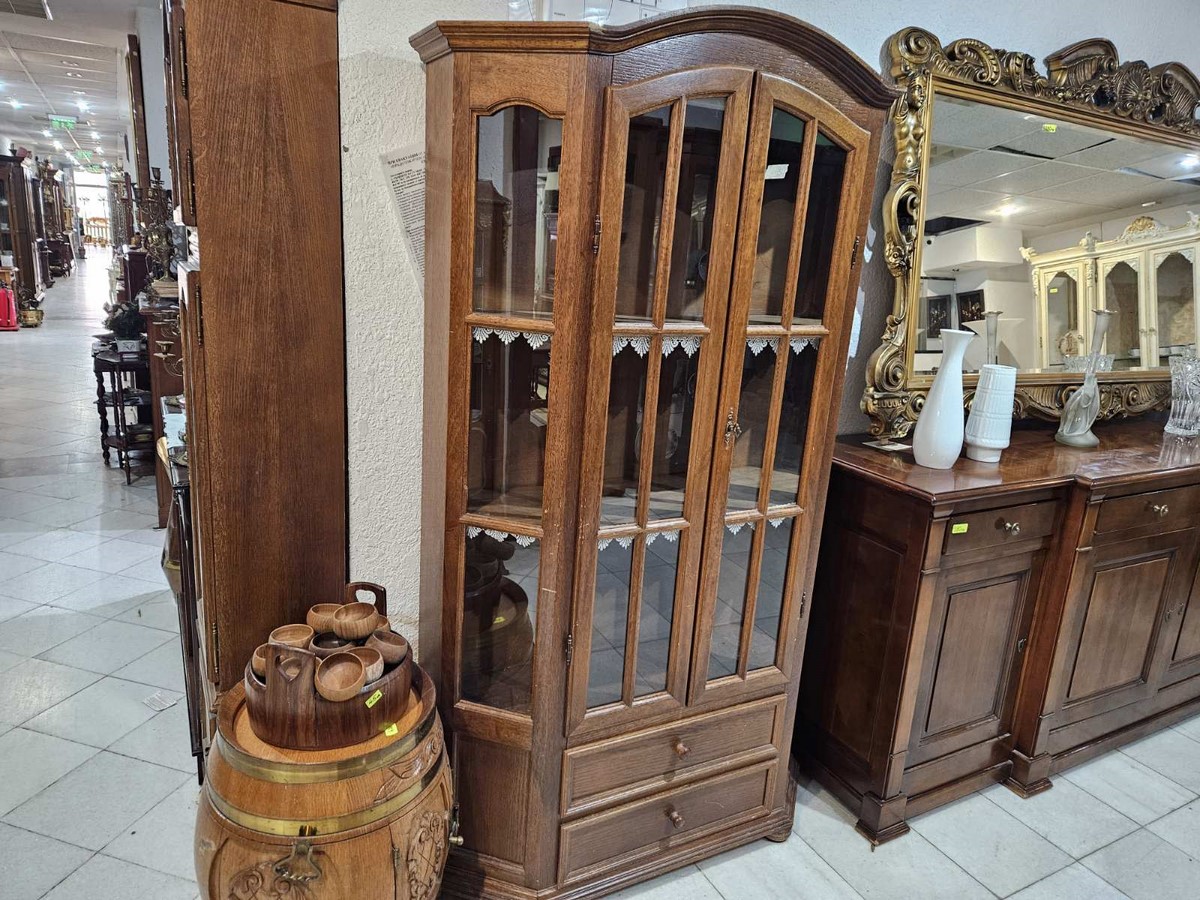 Елегантна дървена витрина с декоративни детайли