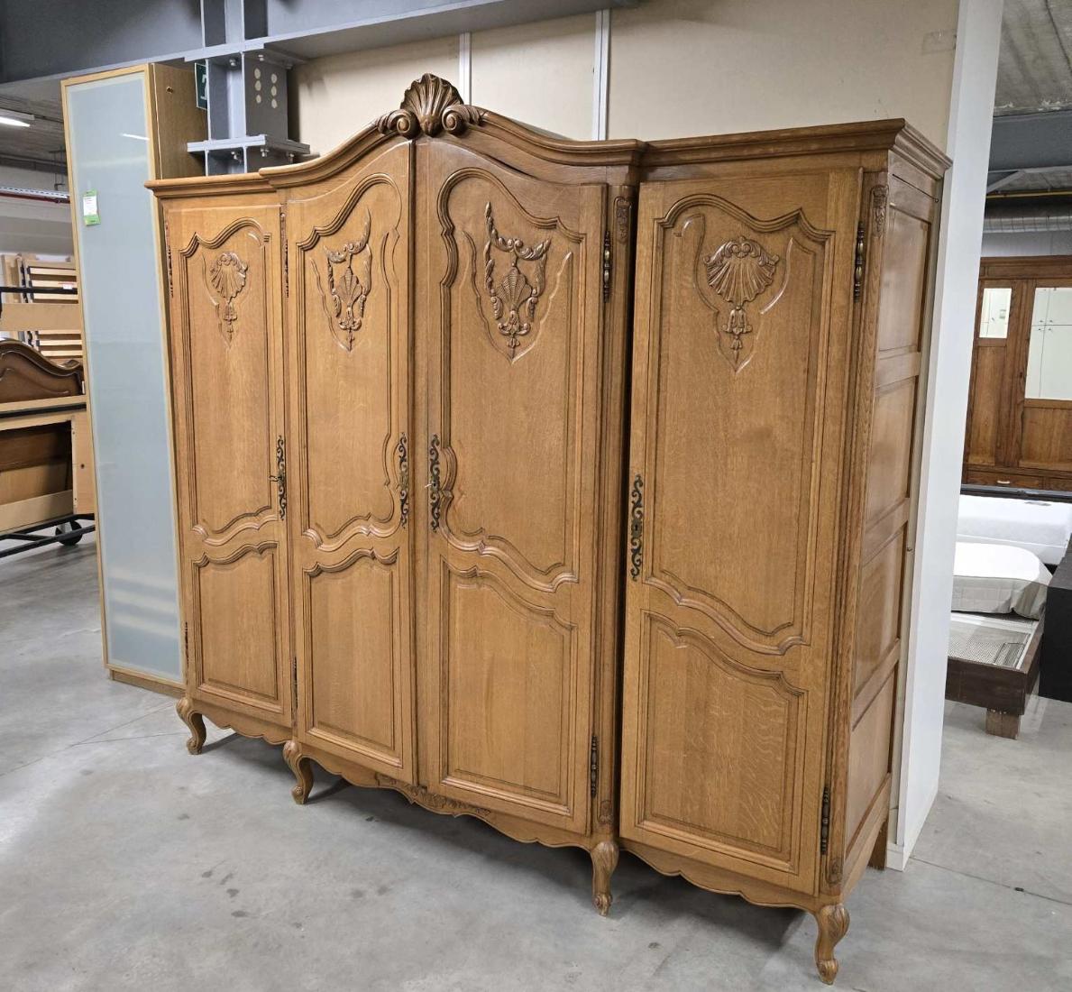 Голям четирикрилен гардероб в стил Луи 15 с изящна дърворезба .