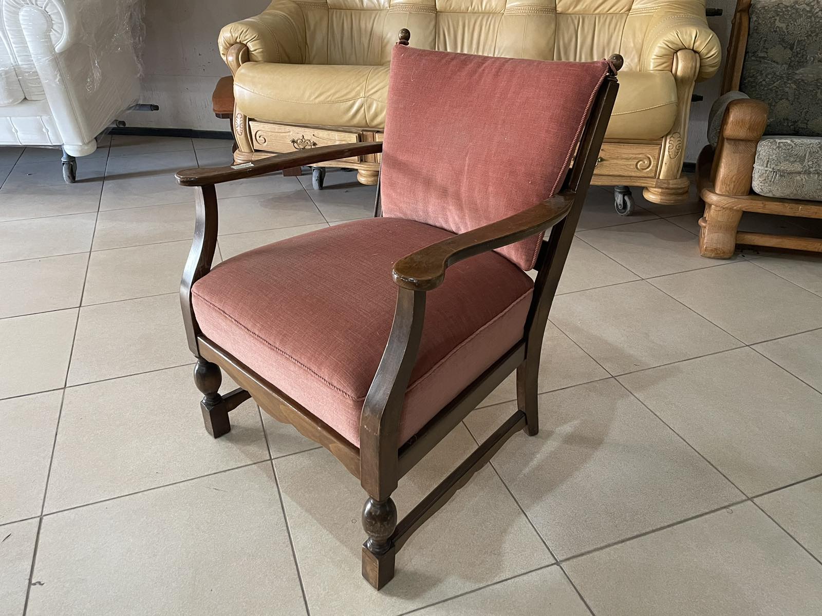 Удобен стол с класическа дървена конструкция и мека тапицерия