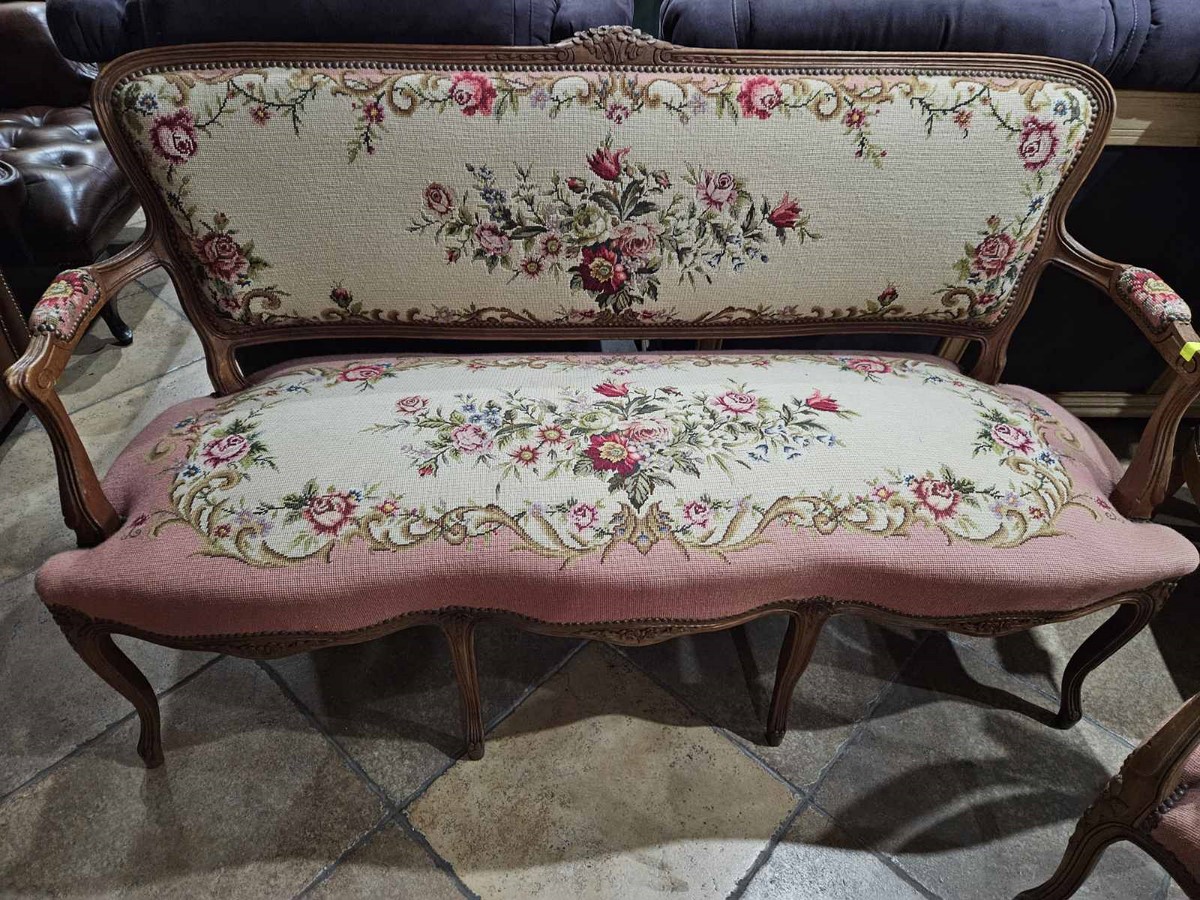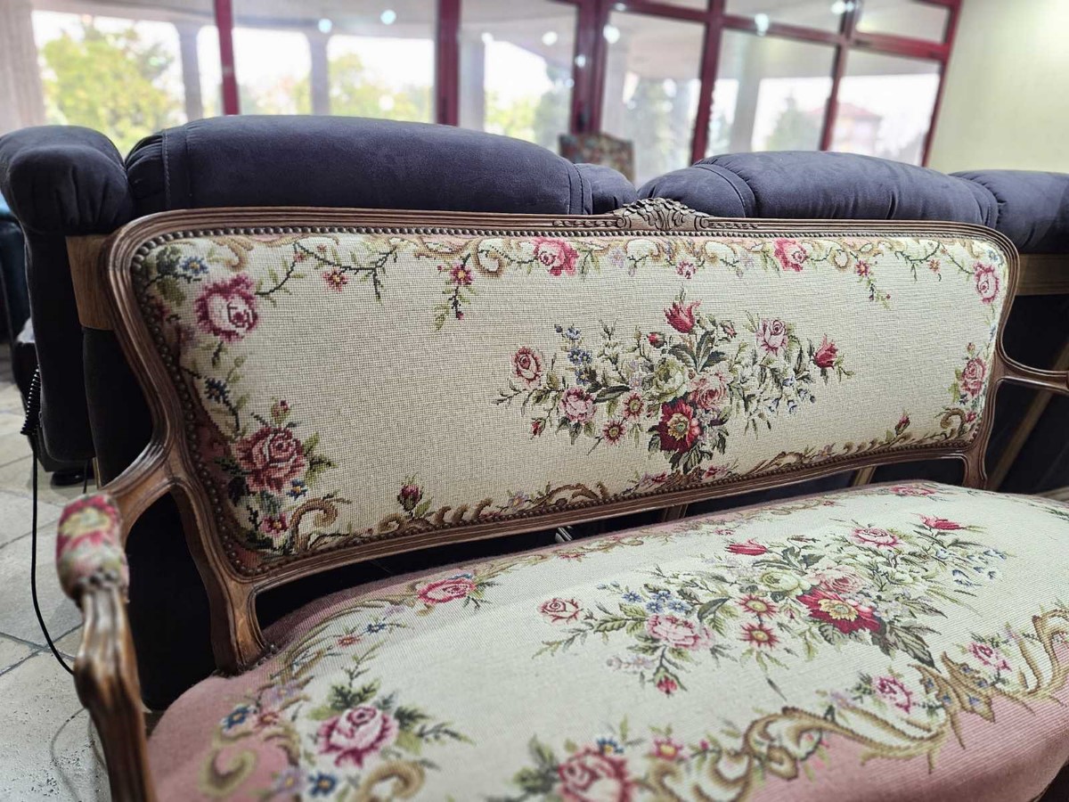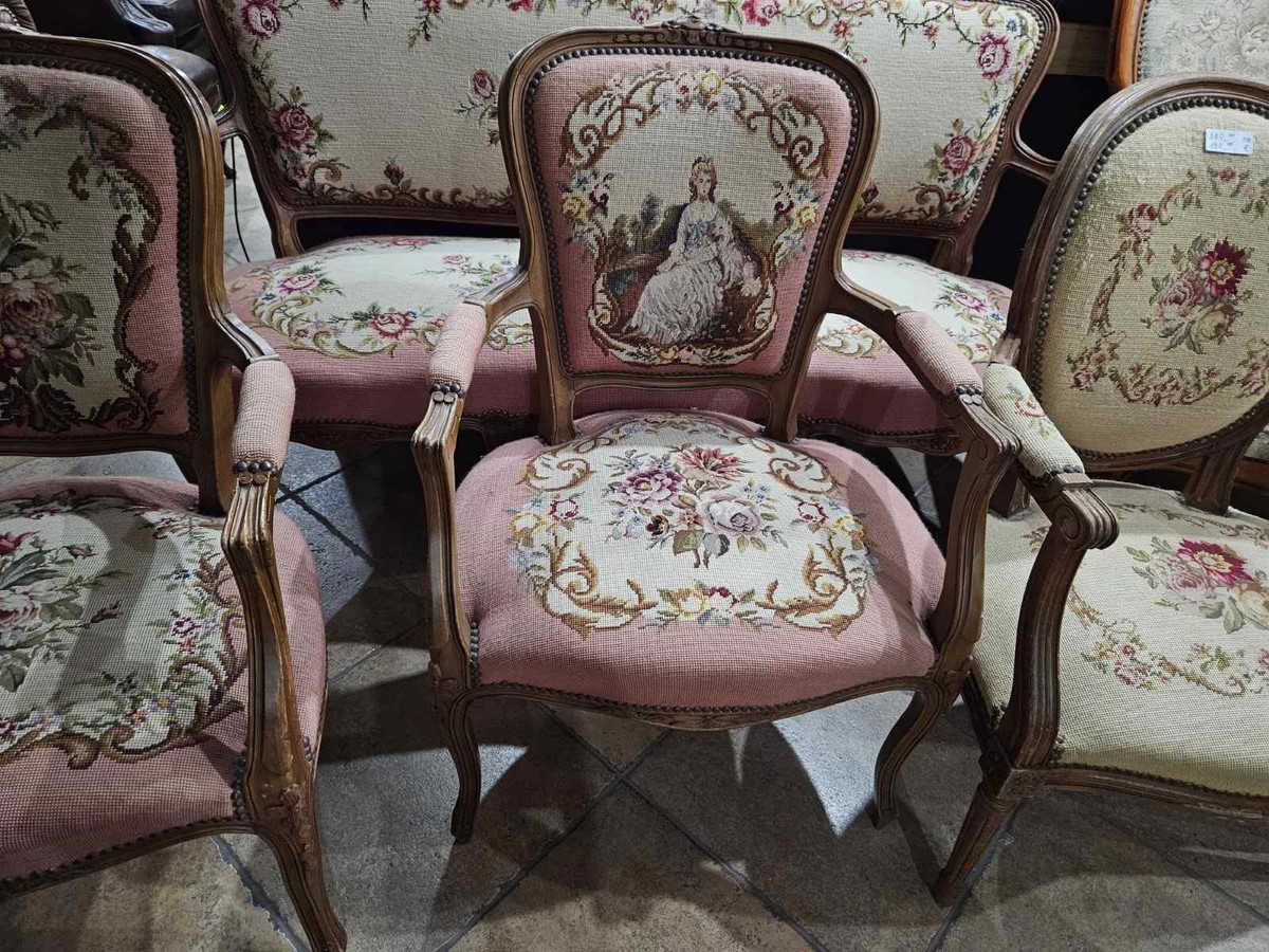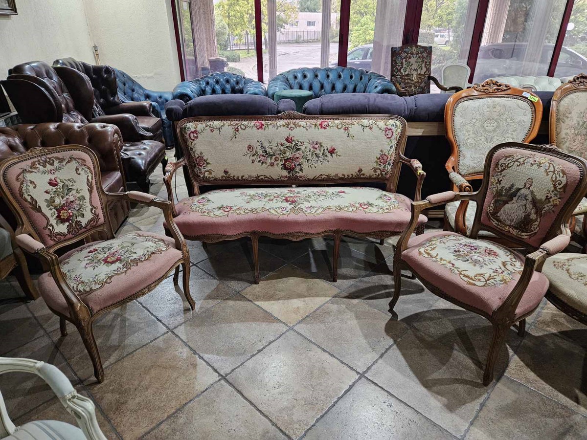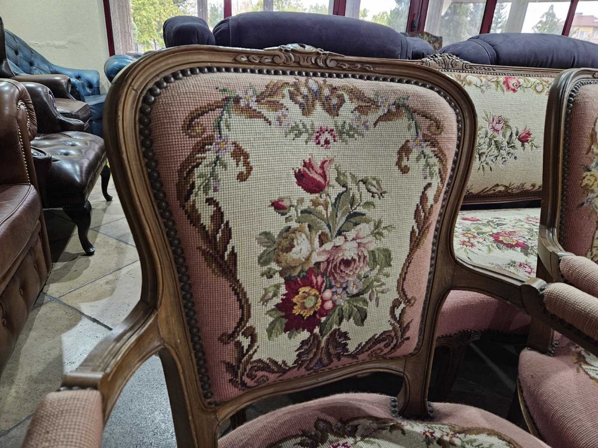 Изискан комплект в стил Луи 15 – съчетава класическа форма и фина ръчна гобленова изработка.
