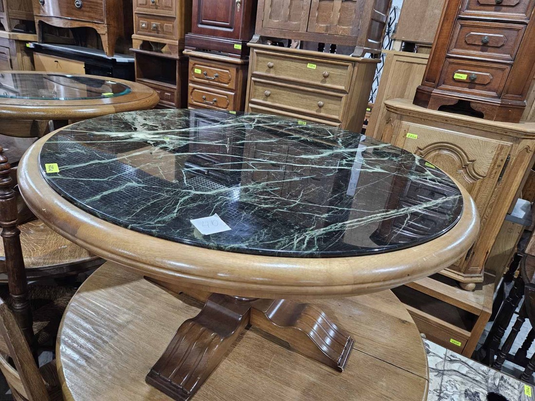 Масивна кръгла холна маса с мрамор
