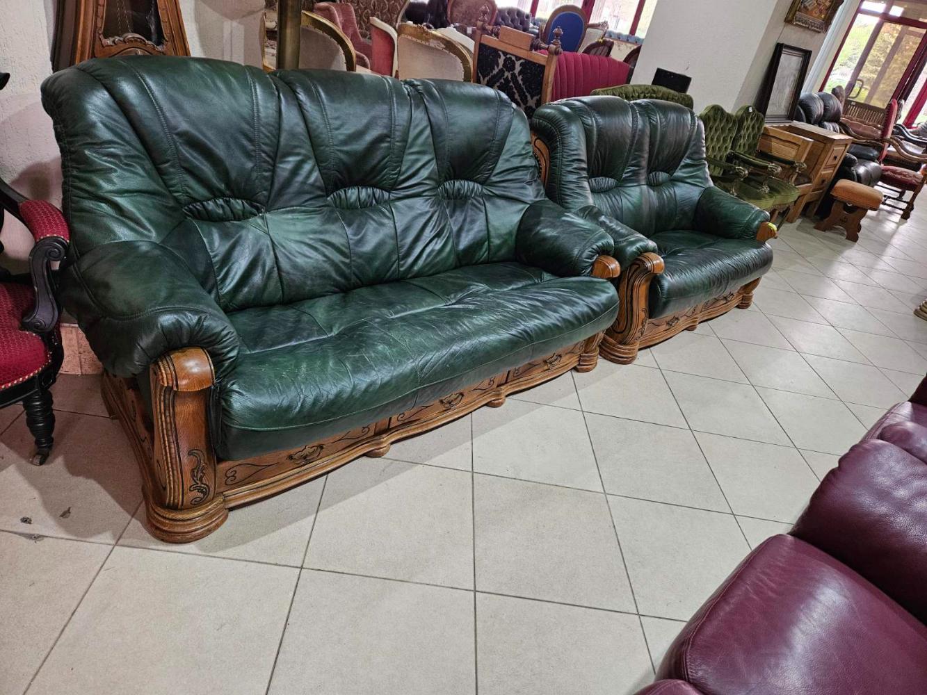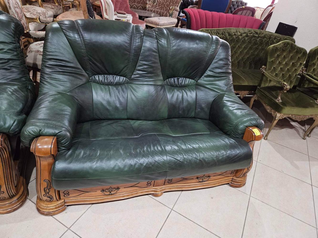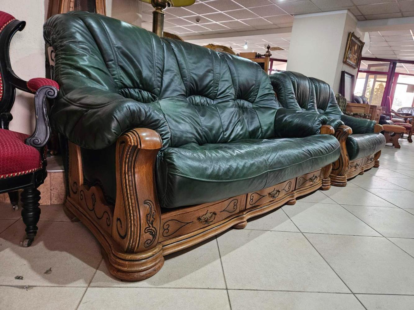 Класически комплект от естествена кожа с резбована основа от дъб.