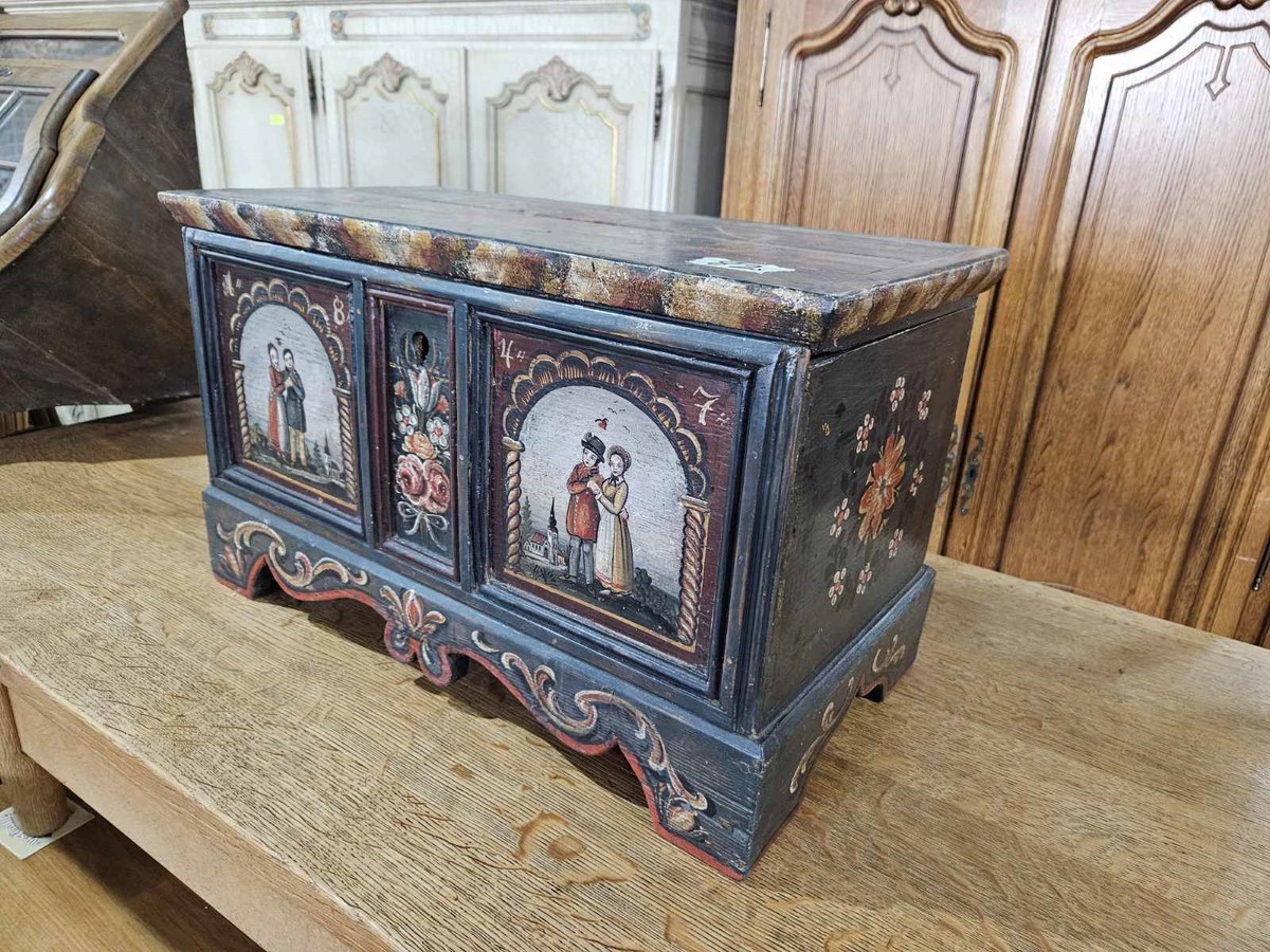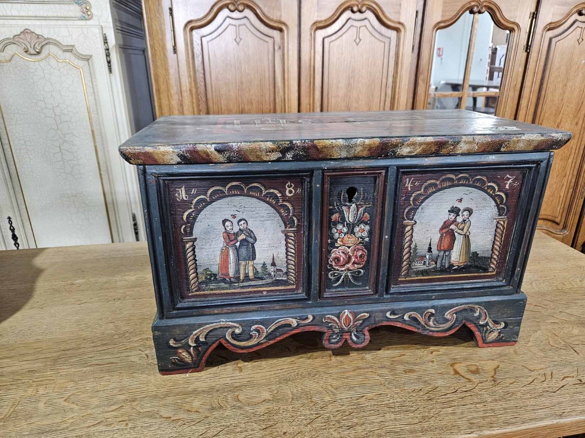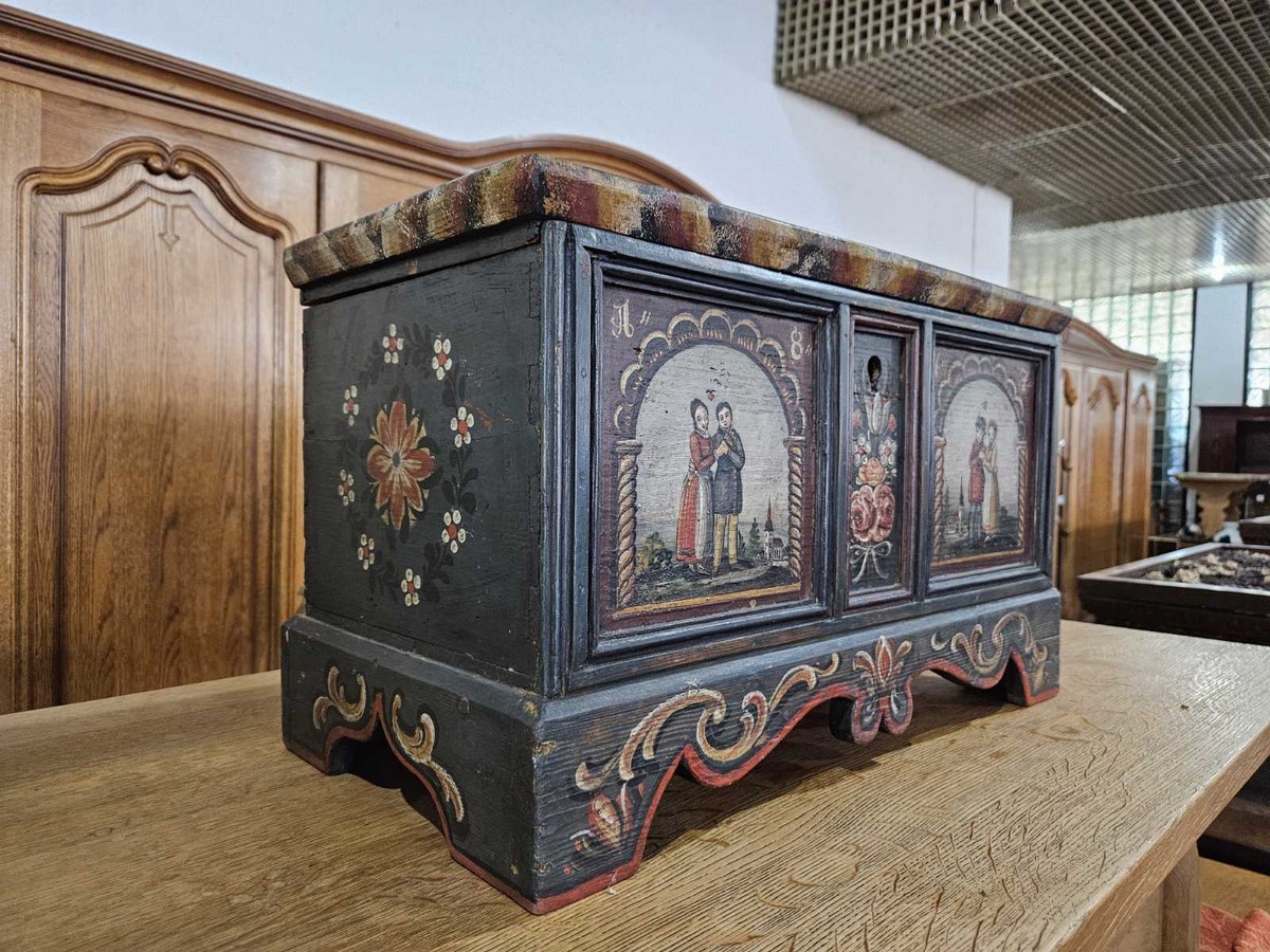 Уникален сандък с фолклорни сцени и декоративни орнаменти.