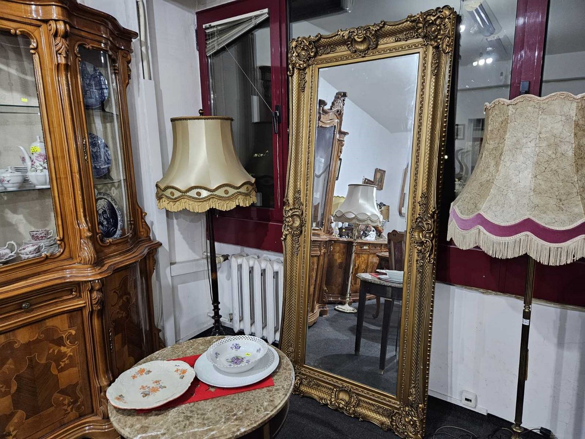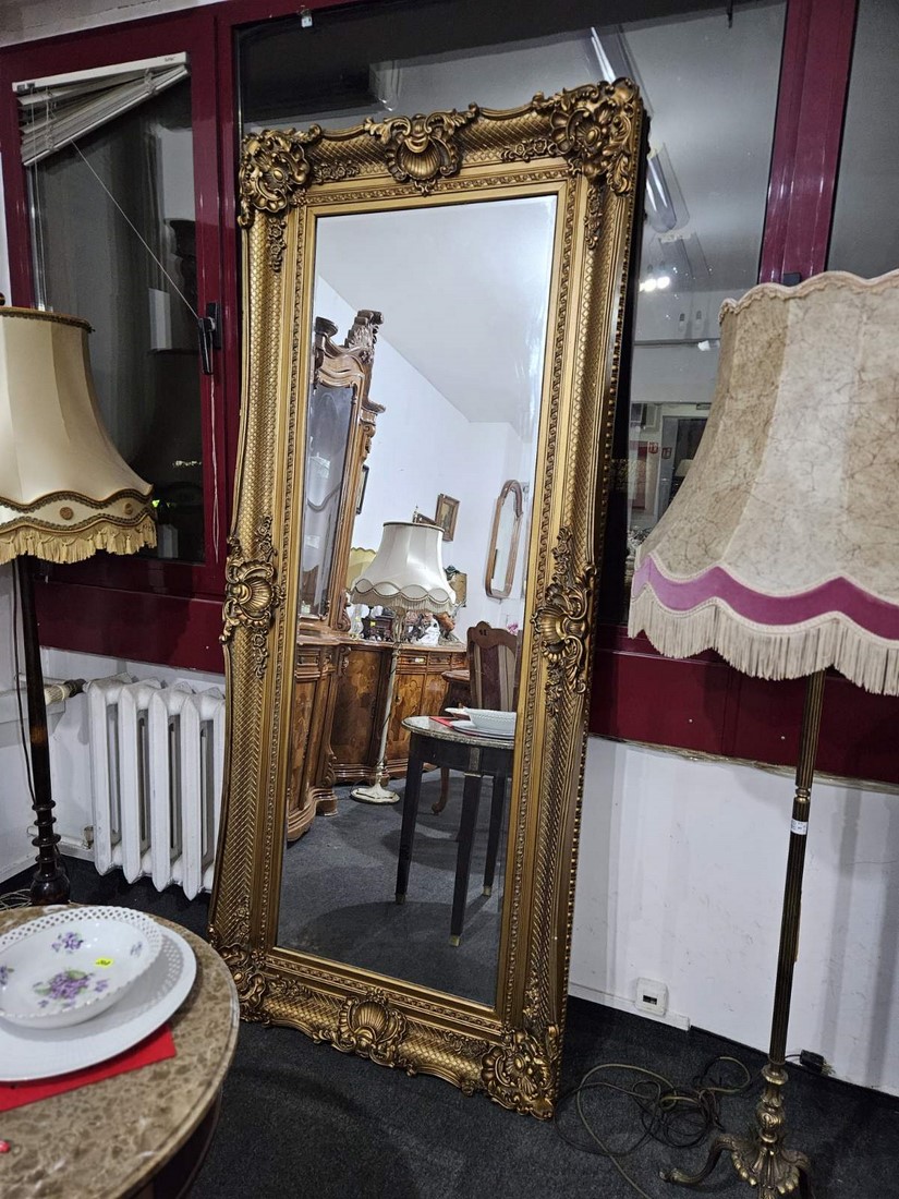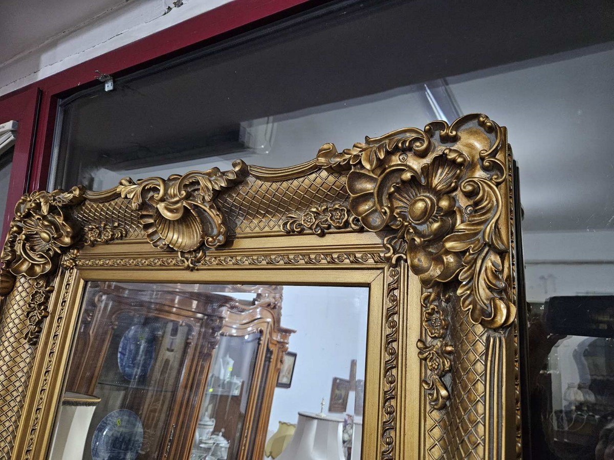 Впечатляващо огледало в богато орнаментиран бароков стил.